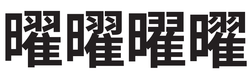 漢字 U+66DC,從左到右分別是簡體中文、繁體中文、日文和韓文